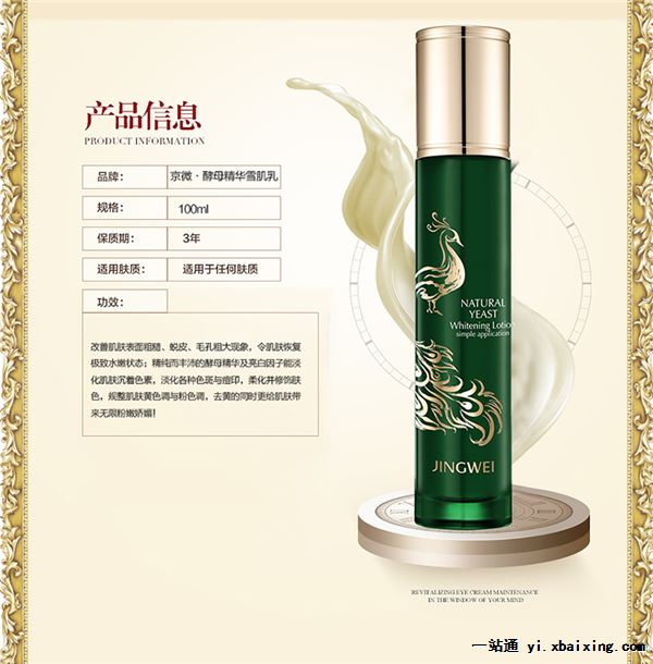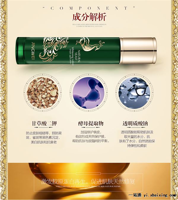 产品名称:京薇酵母精华雪肌乳 产品品牌:京薇 净含量:100ml 产品种类:乳液 产品热点:透亮雪肌,轻轻一抹日臻实现!唤醒初雪般的盈润柔滑、明亮剔透的玉润肌肤。 产品特点及功效 1、 酵母活性成分:天然葡萄、大豆发酵提取的纯活性酵母原液,以小分子能量释放酵母活性成分以及水分滋养,能给肌肤倾注源源充足的丰沛滋养能量,同时带给肌肤如初般柔顺饱满。 2、 保湿壁垒:深入肌肤底层细胞,沁润干燥受损肌肤,使用后更在肌肤表面留下保湿壁垒,有效防止肌肤内在水分流失! 3、 多元亮肤成分:于外遮掩肌肤黄气、痘印、斑点等,于内深彻截击黑色素,令肌肤一点一点地透现白皙、透亮。 4、 天然植物精华:令肌肤摆脱晦暗、干燥、粗糙、松弛、油光等问题,唤醒白雪般的盈润柔滑、明亮剔透的完美肌肤! 主要成分:维生素E、酵母提取物、角鲨烷、甜菜碱、透明质酸钠。 上面展示的价格只是零售价,如果想了解批发价格请点击联系我们查看联系方式进行联系